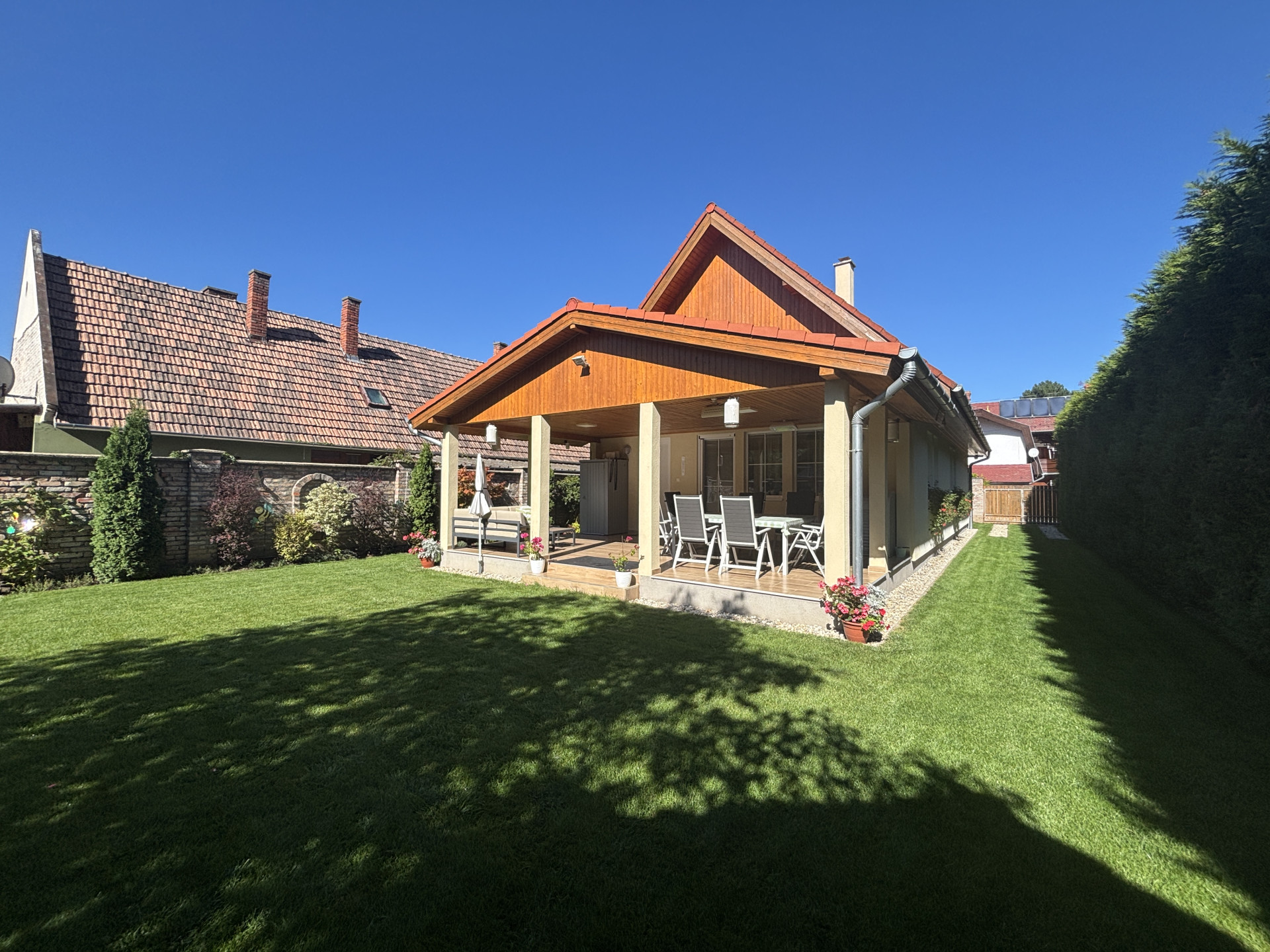 A kivitelezésnek és a beépített anyagoknak, az igényes tulajdonosoknak köszönhetően nagyon szép jó állapotú a ház, egy igazán átgondolt szép életteret sikerült létrehozniuk.