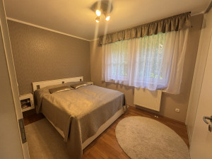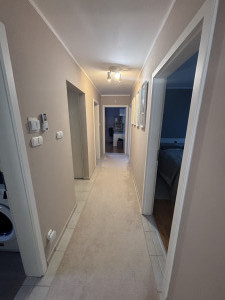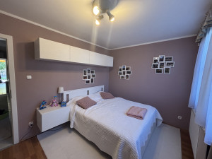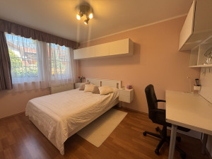 A nappaliból a folyosón tovább haladva megközelíthető a három hálószoba valamint a két fürdőszoba(tusoló+WC és fürdőkád+WC). Az előszobában, konyhában és a fürdőszobákban kőburkolat található, az összes többi helységben lamináltpadló.