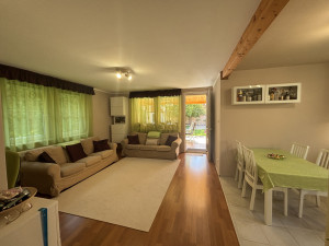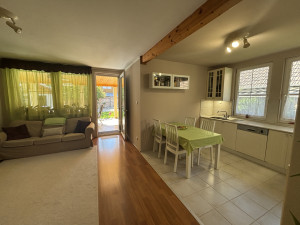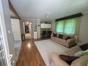 Az ingatlan 2006-ban épült, könnyűszerkezetes technológiával, ahogy belépünk a házba (90) egy előszobába érkezünk, onnan egy folyosón keresztül érkezünk meg a nagyméretű nappali nappali-konyha-étkzőbe  (egy térben), innen a teljes ház szélességében egy 28m2-es hatalmas fedett teraszra lehet kimenni, ahonnan tovább élvezhetjük a természetet a szépen parkosított kerten keresztül.