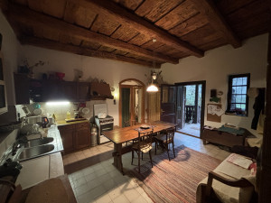 A házba egy tornácon keresztül érkezünk egy nagyméretű konyha-étkezőbe, ahonnan egy hatalmas nappali, egy hálószoba és egy fürdőszoba nyílik. Szintén a tornácról lehet bemenni egy különálló lakó helységbe(szoba) amiből egy WC-kézmosó nyílik, valamint innen lehet kimenni egy nagyméretű hátsó teraszra is. Az épület ezen részéből lehet feljutni a padlástérbe, ami járható, tárolásra alkalmas.