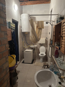 A ház korábban átesett kisebb-nagyobb felújításokon, a fűtés cserépkályhákkal van megoldva, a melegvíz ellátását villanybojler végzi.