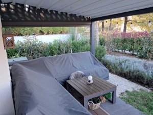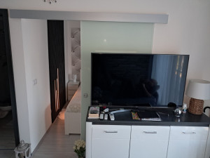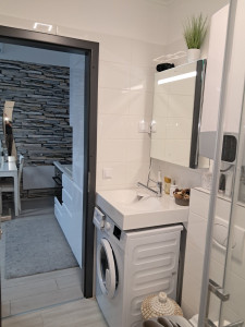 Balatonföldváron a Juventus Homes földszintes kisépületében, 2 helységes apartman(23m2 lakótér+6m2 terasz) pergolás fedésű terasszal eladó. Ahogy belépünk az ingatlanba, a konyhával egy légterű nappaliba érkezünk, innen nyílik a hálószoba. és a fürdőszoba, ami villany törölközőszárítós radiátorral és zuhanykabinnal, mosógéppel van ellátva. Villany fűtés és hűtő-fűtő klíma van felszerelve. A melegvíz ellátást  saját villanybojler végzi. A nappaliban nagyonszép konyha került beépítésre. A lakás teljesen bútorozott, nagyon igényesen és praktikusan lett berendezve!
